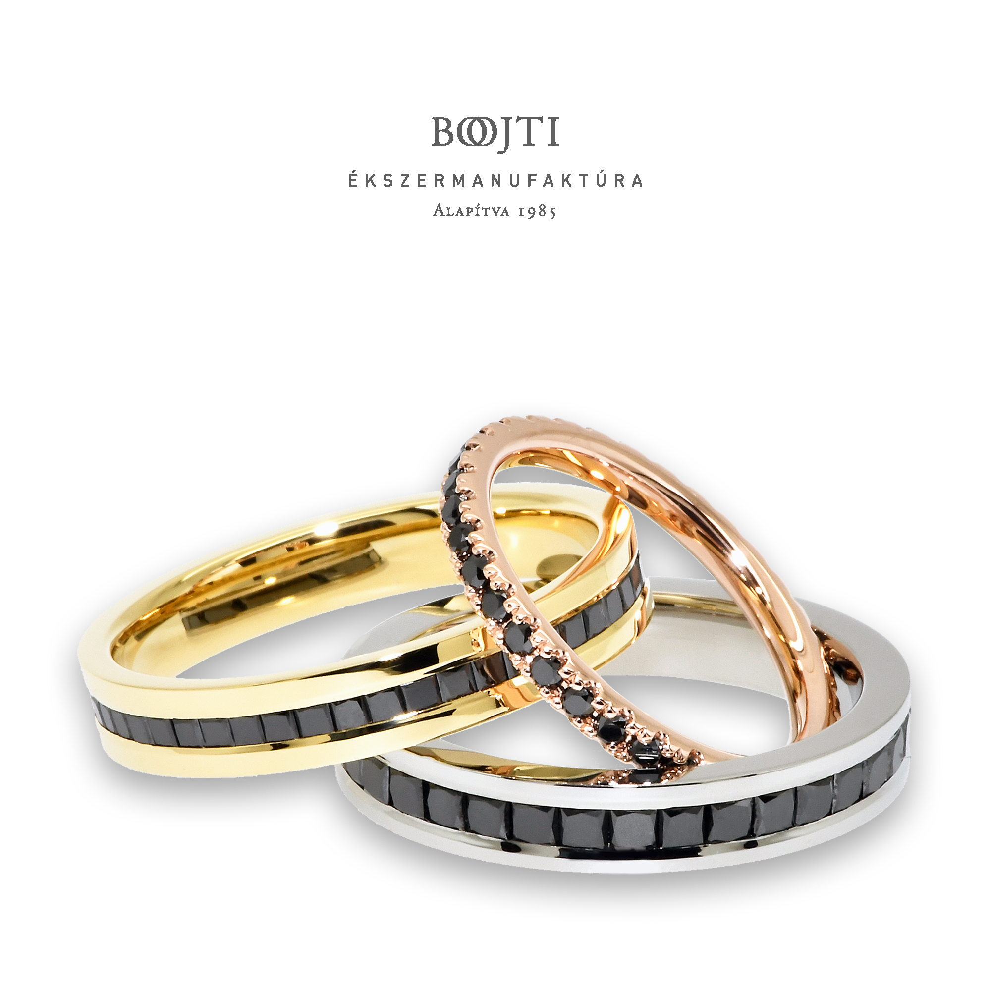 There are countless requests from couples who want some kind of black ornament in their wedding rings. Of many solutions, the most durable is to opt for the eternity of diamonds here too. We include black princess cut diamonds in our hoop rings for cohesive stone setting and round diamonds for embellishment.